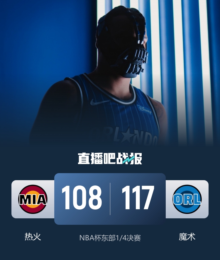 NBA杯-魔术击败热火挺进东部决赛 贝恩37+6+5 鲍威尔21+7